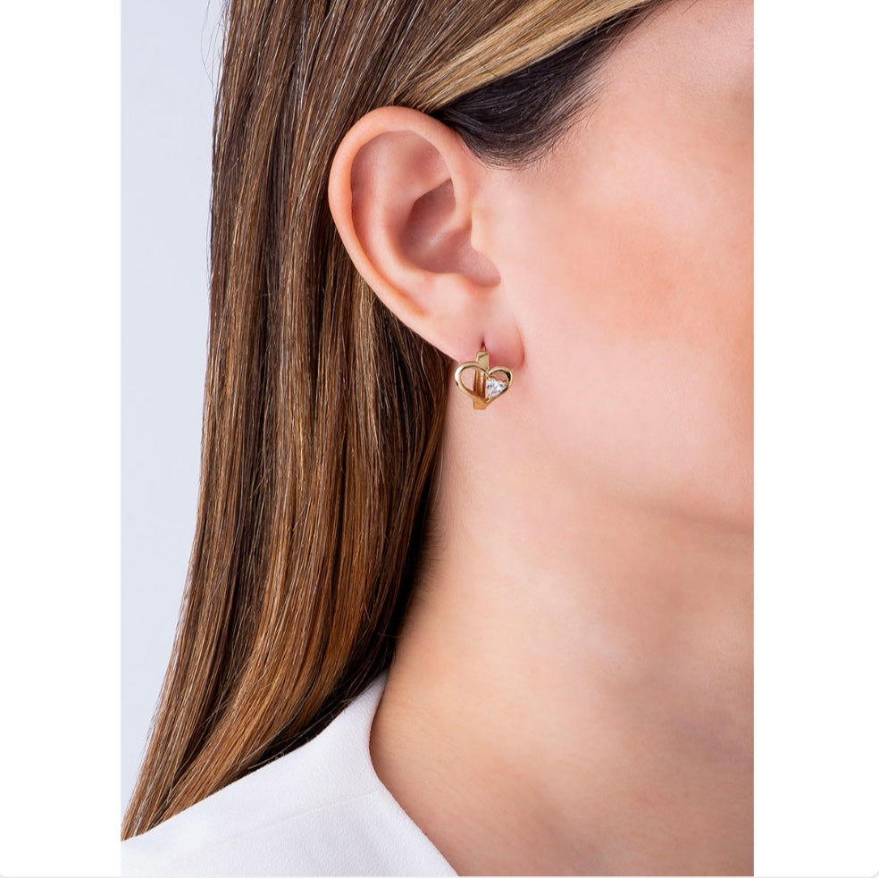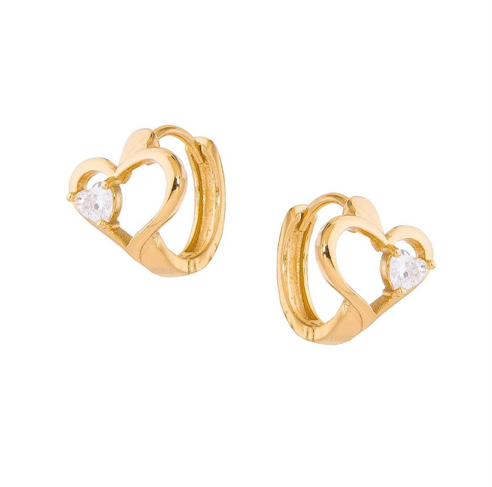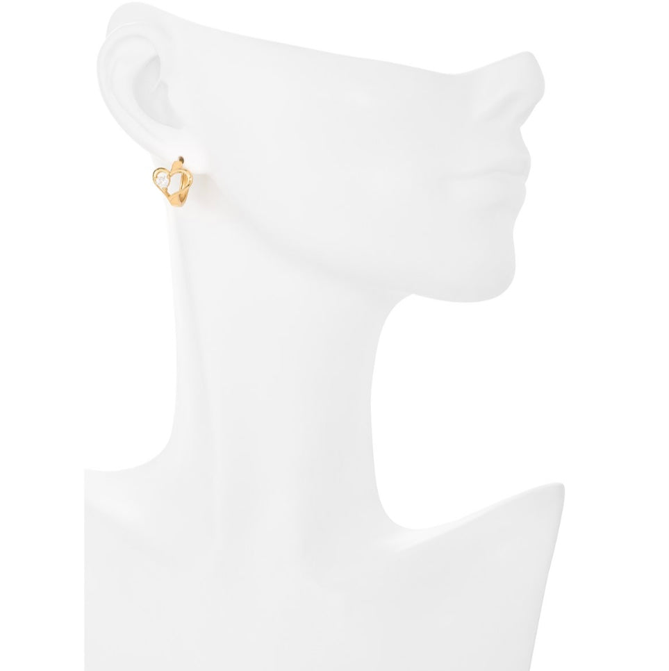 GOLD PLATED HUGGIE POST EARRINGS WITH DIAMONICE