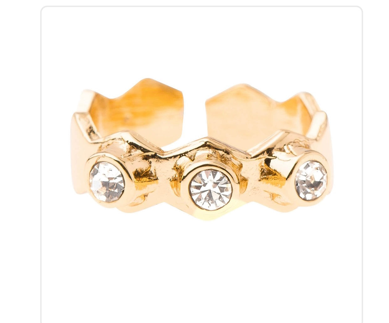 Gold Plated Adjustable Hexagon Ring with Crystals.
